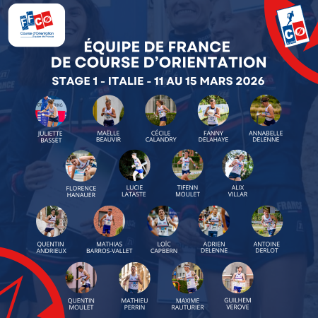 La liste des sportifs sélectionnés en équipe de France de CO à pied pour le stage n°1 qui se tiendra du 11 au 15 mars 2026 en Italie est en ligne !