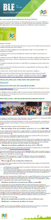Le bulletin de liaison des experts (BLE) est destiné à l’ensemble des experts exerçant sur les diverses épreuves et disciplines de course d’orientation de la fédération. Il est envoyé par courrier électronique à chaque trimestre. L’objectif du BLE est d’apporter aux experts toutes les informations nécessaires à l’exercice de leur(s) fonction(s), en apportant notamment des précisions règlementaires.